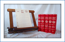 5 volúmenes. Más de 2.000 páginas de 23,5 x 16,5 cm. Encuadernación en súper lujo terciopelo y tapas acolchadas con estampaciones en oro en lomo y plano. Edición limitada y numerada.