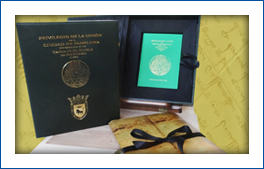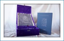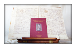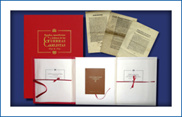 1 volumen, en edición facsímil, y 3 documentos sobre el Rey D. CARLOS VII. Todo ello en un estuche de terciopelo con estampaciones en oro.