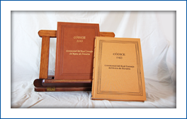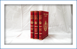 3 volúmenes. Más de 900 páginas de 23,5 x 16,5 cm. Encuadernación en superlujo terciopelo y tapas acolchadas con estampaciones en oro en lomo y plano.