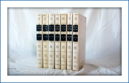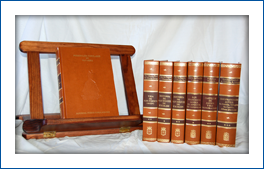 7 volúmenes. Más de 3.500 páginas de texto de 24,5 x 17,5 cm. Encuadernación en piel, con estampaciones en marrón y oro en lomo y plano.