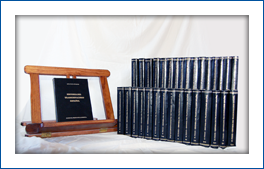 32 volúmenes. Más de 10.000 páginas de texto de 21 x 15 cm. Grabados y planos. Encuadernación en piel con estampaciones de oro, en lomo y plano. Edición limitada y numerada.